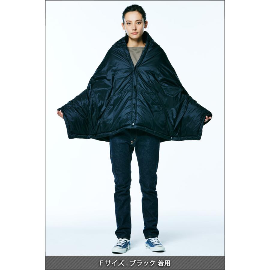 薄いナイロン生地と柔らかくて暖かい中綿が入ったポンチョ。