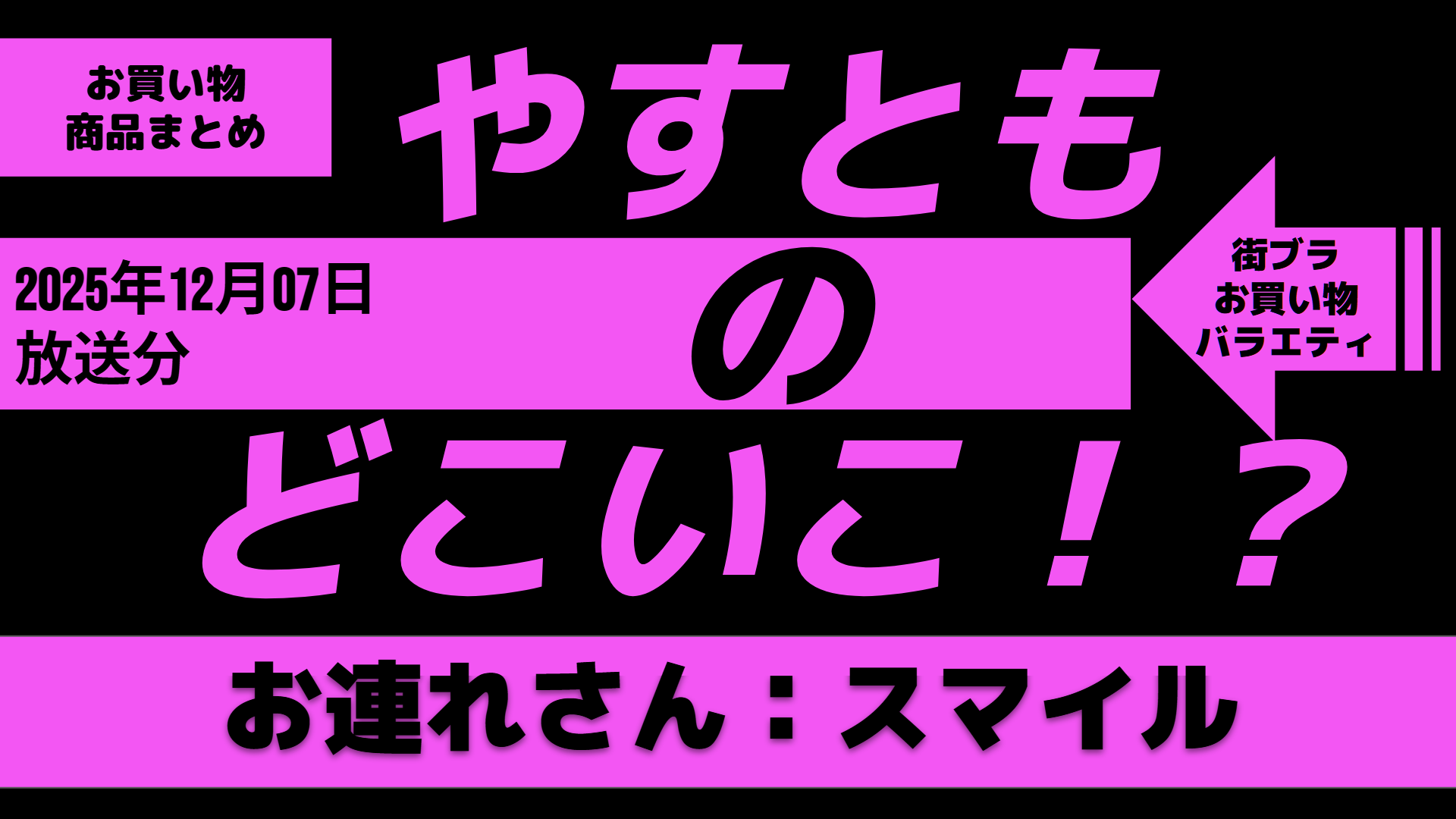 先週放送分の記事はこちら>>>やすとものどこいこ!?トットとIKEA鶴浜でお買物(25年11月30日放送)