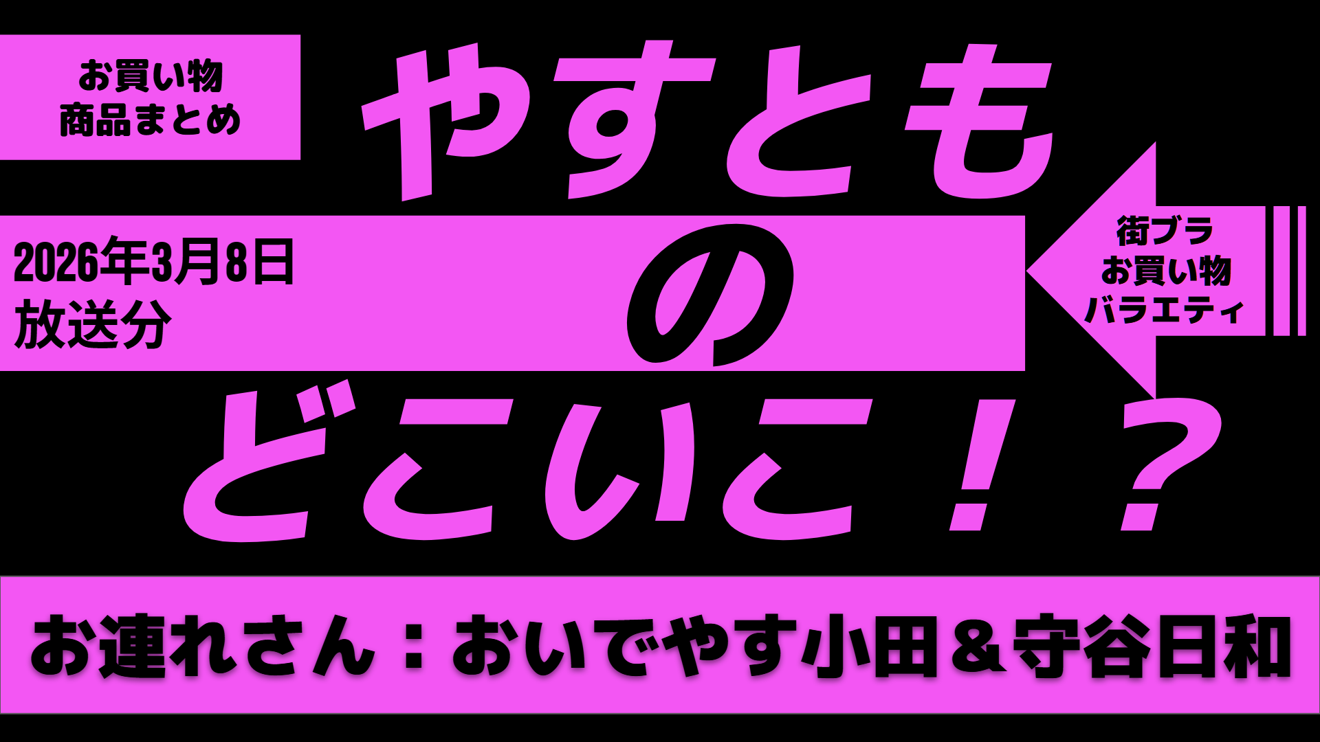 「やすとものどこいこ!?」は、テレビ大阪で毎週日曜日の15:00から関西地区で放送されている大人気番組です。