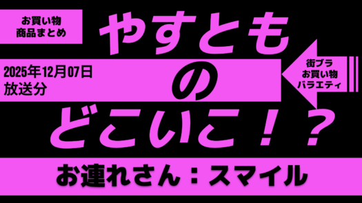 やすとも&スマイルの購入/推薦商品多数紹介!やすとものどこいこ!?門真でLAKOLEの小物、日用品など、LOGOSの携帯用イスなど、ライフの食料品などおすすめ商品を爆買い! 25年12月7日テレビ大阪で放送。